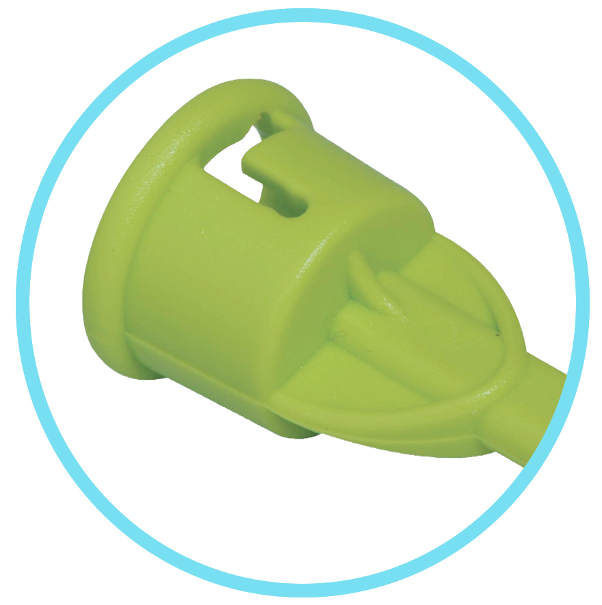 Sem risco de ingestão: dispositivo com bloqueio de segurança.
