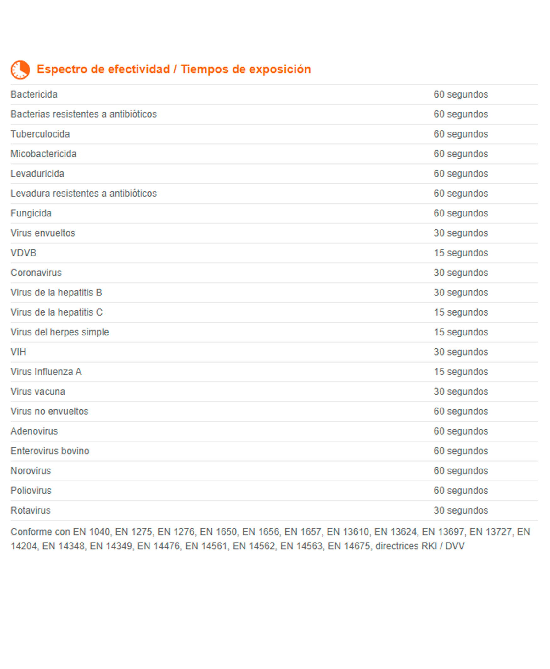 a usar e completamente virucida, adequado para o uso em dispositivos médicos
