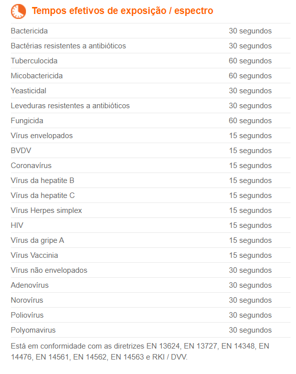 bactericida, tuberculicida, micobactericida, leveduricida, fungicida e virucida.
