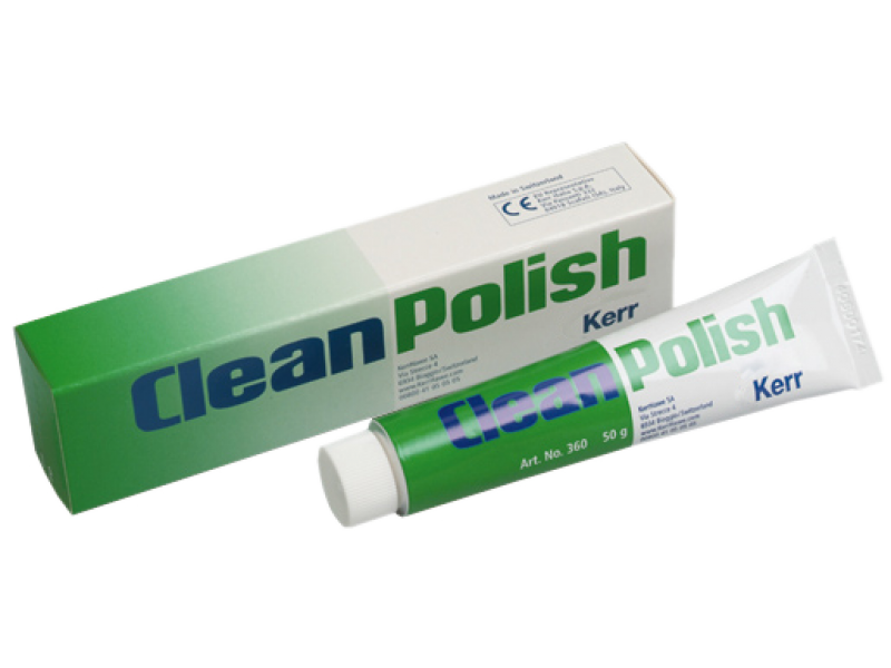 CleanPolish é uma pasta enriquecida com pedra-pomes que limpa os dentes naturais e as restaurações com metal de maneira rápida e eficiente.